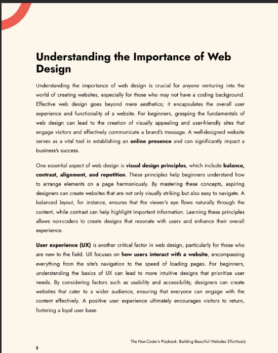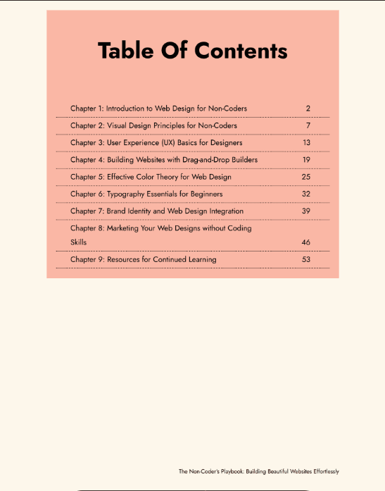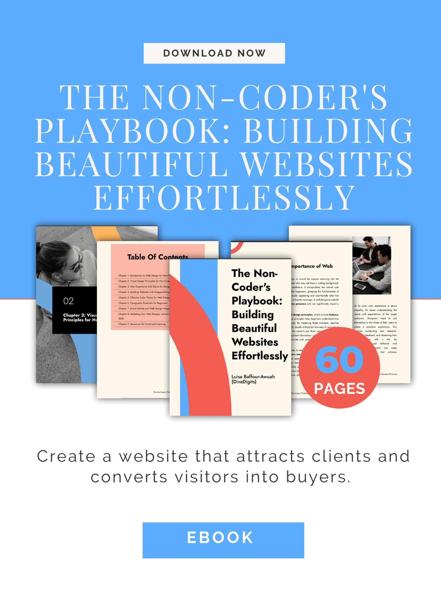 The Non-Coder’s Playbook is your ultimate step-by-step guide to building modern, beautiful, and fully functional websites without writing a single line of code. Whether you’re an entrepreneur, small business owner, creative, or complete beginner, this eBook will empower you with the knowledge and tools you need to confidently create and manage your own website.